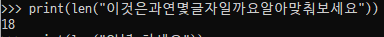 F. 문자열 길이 구하기 : 길이 구할때 쓰는 함수, len()