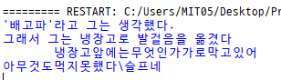 print("\'배고파\'라고 그는 생각했다.\n그래서 그는 냉장고로 발걸음을 옮겼다\n\t냉장고앞에는무엇인가가로막고있어\n아무것도먹지못했다\\슬프네")