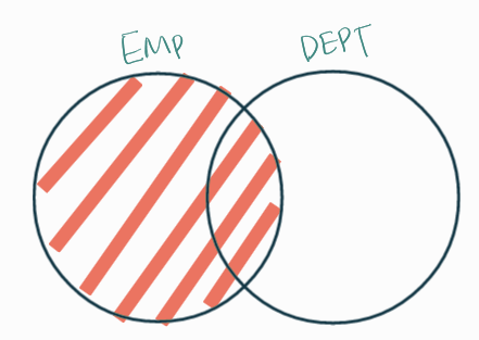 그냥 EQUI JOIN이였으면 출력이 안되었을지만, LEFT OUTER 이기 때문에 emp의 모든 데이터가 출력됨