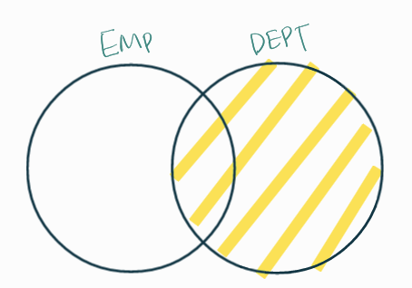 ▷ 오른쪽 테이블인 DEPT 의 데이터가 모두 출력됨,