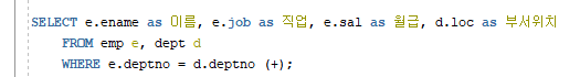 ▶ 오라클 OUTER JOIN 사인은 (+)