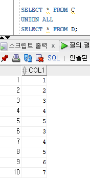 ▷ UNION ALL 로 출력했을 때는 COL1 데이터가 중복되어도 모두 출력되지만