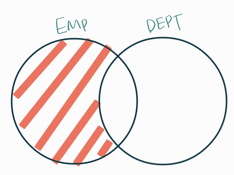 ▼ EMP MINUS DEPT 를 벤다이어그램 그래프로 표현하자면 요렇게