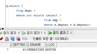 ▼ 존재하지 않는 데이터를 검색할 때는 NOT EXISTS를 사용