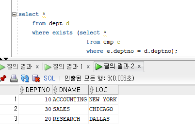 ▶ dept 테이블의 deptno가 10,30,20 은 emp 테이블에도 존재함!