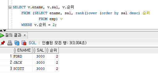 만약 where절로 순위가 2등인 사원을 출력하라고 했다면