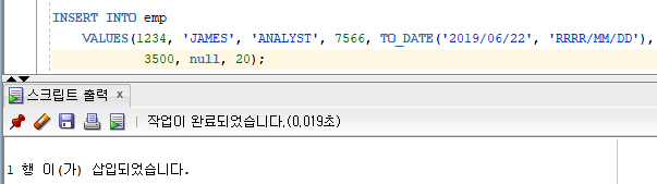 ▷ 날짜를 입력할때는 TO_DATE 변환 함수를 사용해서 연/달/일 정확히 명시해줌