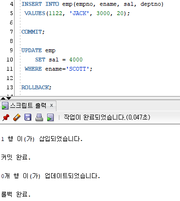 9~11행 (SCOTT 연봉을 4000으로 업뎃하는것)은 취소됨.