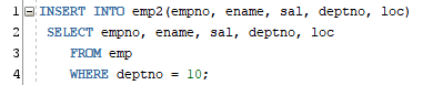 ▲ 위 쿼리문은 부서번호 10번인 사원들의 데이터를 emp2에 입력하는 insert 문