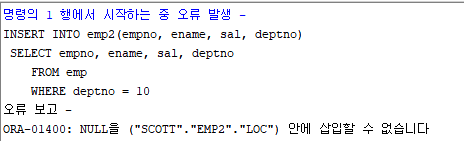 ORA-01400: NULL을 ("SCOTT"."EMP2"."LOC") 안에 삽입할 수 없습니다