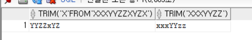 SELECT TRIM('x' FROM 'xxxYYZZxYZx'), TRIM(' xxxYYzz ')