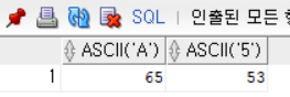 SELECT ASCII('A'), ASCII('5') FROM dual;