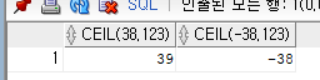 SELECT CEIL(38.123), CEIL(-38.123) FROM DUAL;