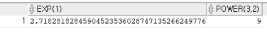 EXP(숫자):지수함수, POWER(숫자1, 숫자2)