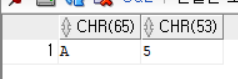 SELECT CHR(65), CHR(53) FROM dual;