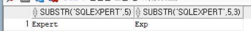 SELECT SUBSTR('SQL Expert',5), SUBSTR('SQL Expert', 5,3) FROM dual;