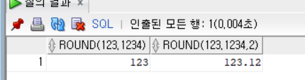 SELECT ROUND(123.1234), ROUND(123.1234,2) FROM DUAL;
