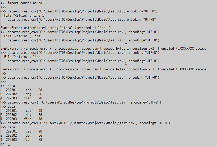 고칠 수 있는 방법은 3가지(1. \ > / 로 바꿔주기 2. 링크 따옴표 앞에 r 을 붙여서 읽어주기,3. \만 있으면 특수문자로 인식할 수 있으니 \\두개를 써서 이건 특수문자 아니여 라고 알려주기)