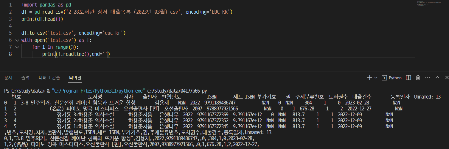 ▼ to_csv() 메서드로 csv로 저장할 때 인코딩 매개 변수를 사용하고 난 후 / 에러 고침
