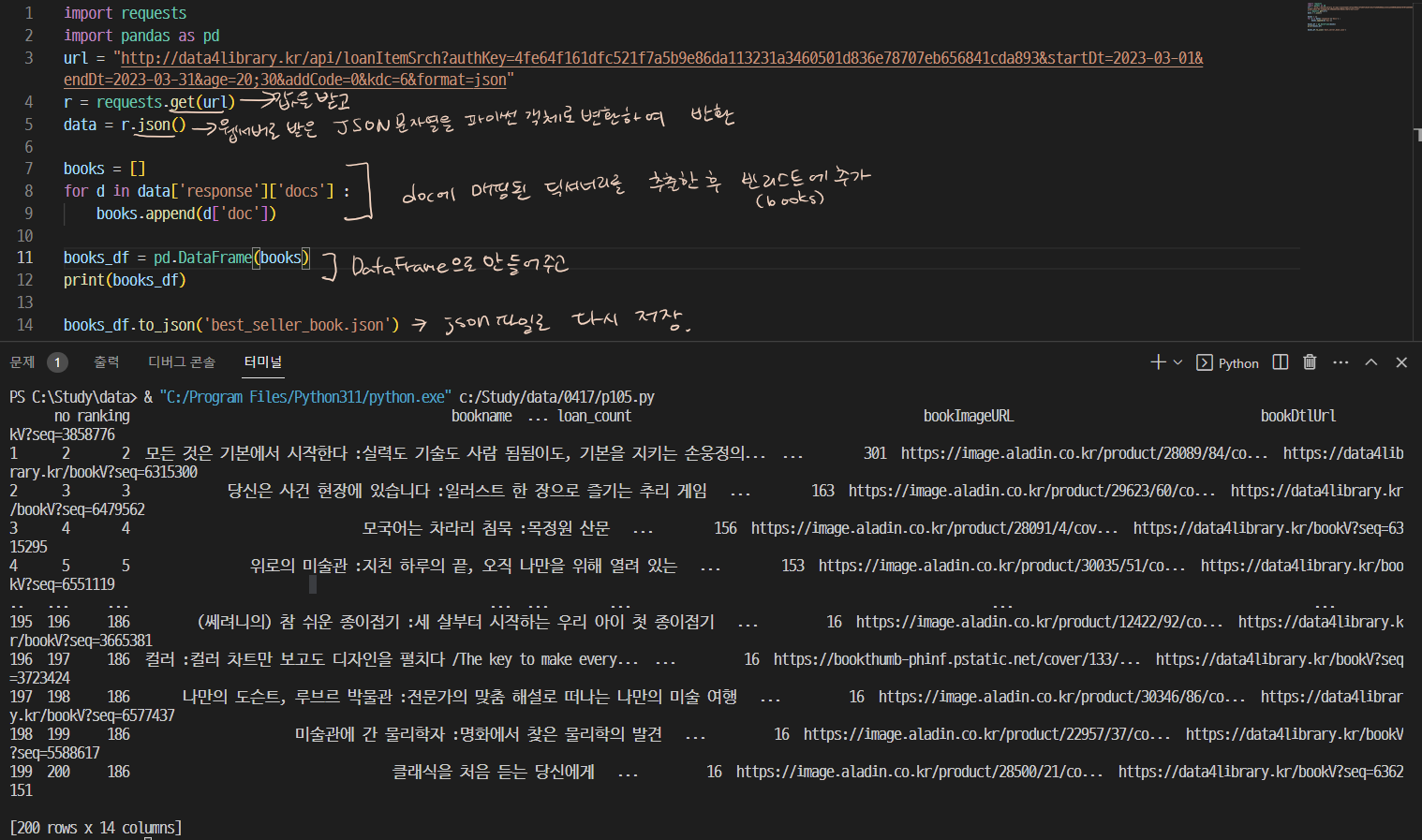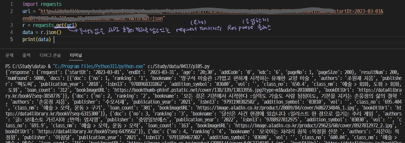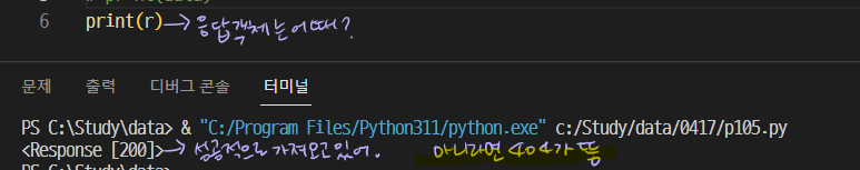 2. requests.get() 으로 URL 호출해 데이터를 받는다