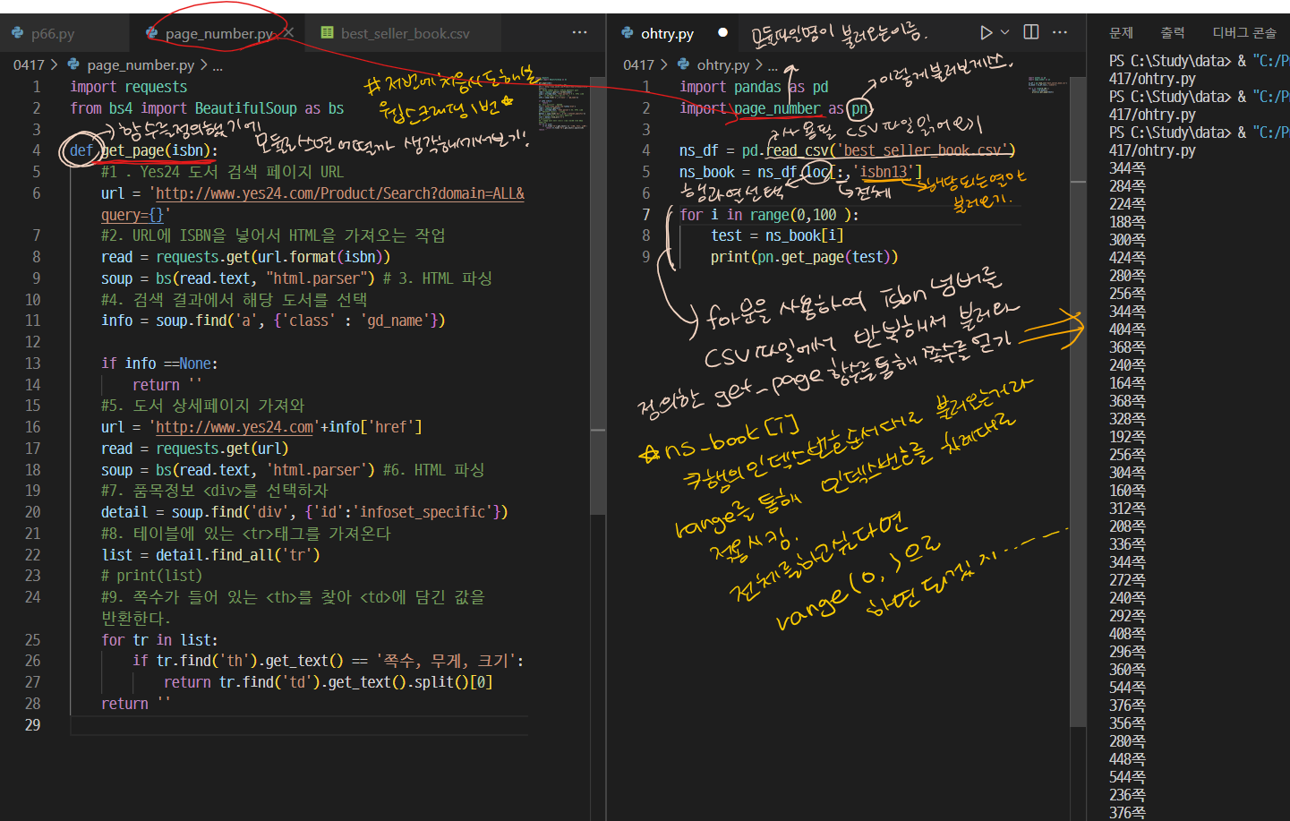 데이터 분석을 통해 페이지 수를 불러오는 함수를 만들고나니