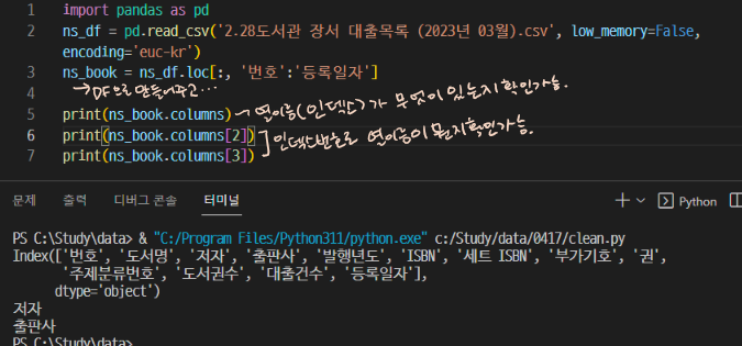 - 어쨌든 정제하려면 행이야 순서대로 인덱스 번호가 주어진다지만..!