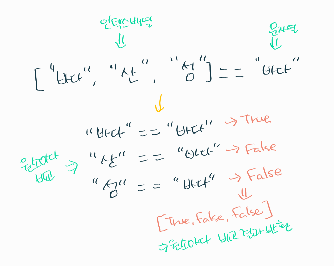 ▷ 이것이 바로 원소별 비교, element-wise comparison ▼ 이렇다고 함