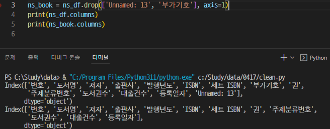 | pandas 데이터프레임 불필요한 데이터 제거 및 정리 예제 1번 (2) | 2023.04.24 |