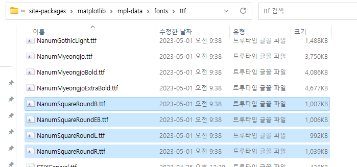 3. 그럼 글꼴 TTF 파일을 끌어다 폴더에 복사를 해준다. (맷플롯립에 설치하기)