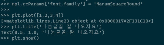 * 그래프에 사용되는 글꼴은 시스템의 글꼴을 불러오는게 아니라 matplotlib에 설치된 글꼴로 하는 것..