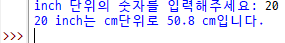 print(inch, "inch는 cm단위로", cm, "cm입니다.")