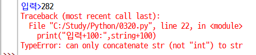 print("입력+100:",string+100)