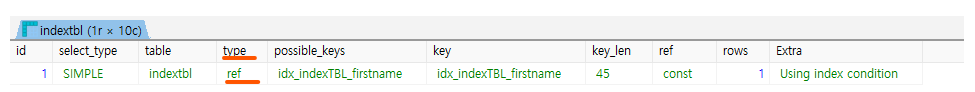 - type : ref 로 바뀌고. 이는 인덱스를 사용해서 결과를 찾아냈다는 의미.