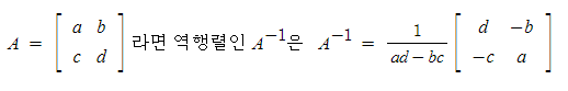 * 만약 ad-bc = 0 이 되는 행렬은 역행렬이 존재하지 않음.