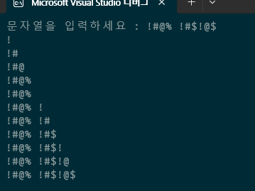 4. 문자열을 하나 입력 받고 문자열의 부분을 하나하나 글자를 출력하는 프로그램을 짜보시오.