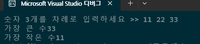 cout << "숫자 3개를 차례로 입력하세요 >> ";