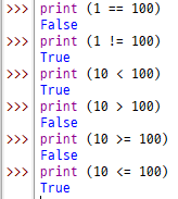 ▶ 범위 등도 비교가능 ex. x=(입력) >>> print (10<x<30)