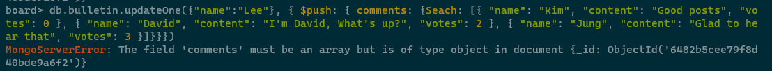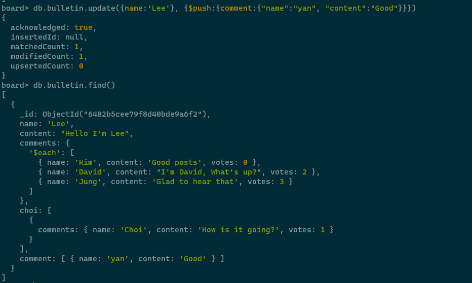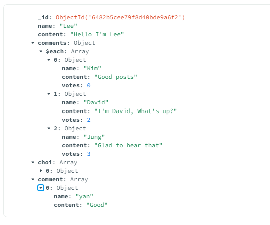 2. name: Lee의 포함된 배열에 한개의 의견을 추가하고