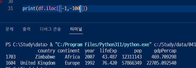 > 얘는 -1 을 전달해도 마지막 행 데이터를 추출함. (파이썬의 인덱스처럼인가)
