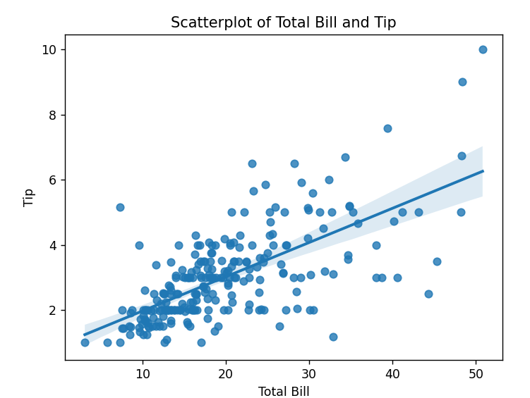 - 회귀선 주변의 연한 영역은 회귀선의 신뢰구간을 의미
