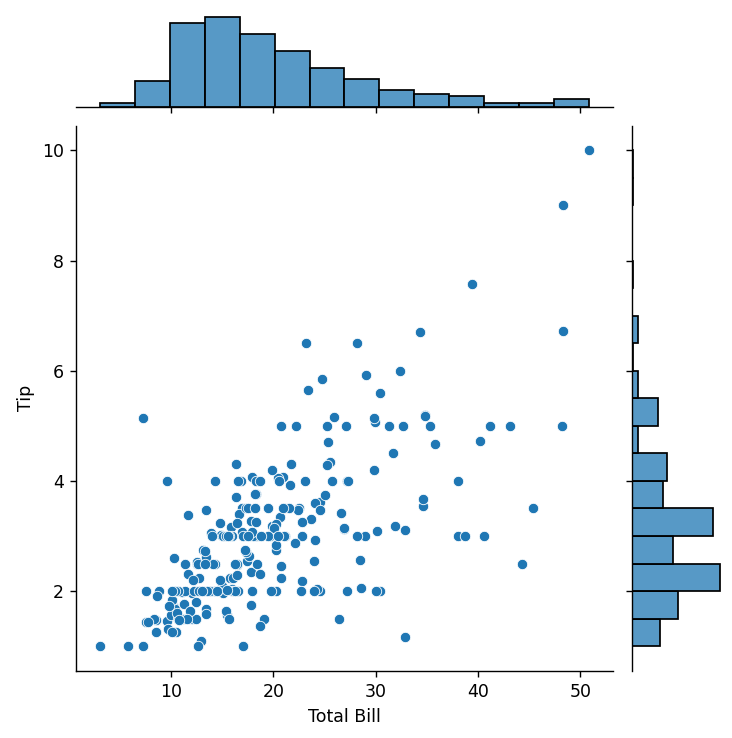 4. jointplot : 산점도 + 히스토그램 그래프 같이 그려주는 메서드